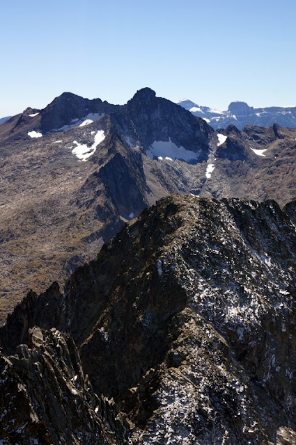 De mon côté je file à la brèche de Néouvielle, pose le sac, et monte fissa au pic des Trois-Conseillers (8h50), sur un sentier enneigé. Quelques vues :